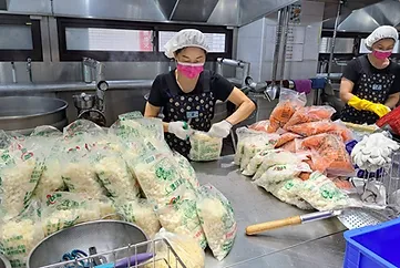 校廚準備每日食材的過程,需先將所有的食材擺放在準備區,並一一清點食材數量是否正確後,始開始進行料理作業。