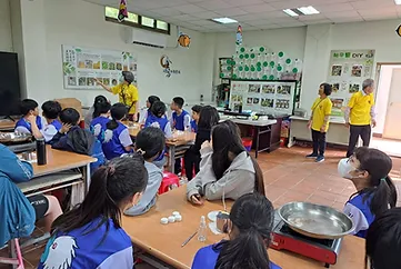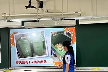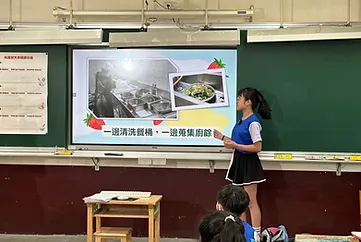 介紹午餐廚房的環境及工作時,希望在午餐教育的歷程中,讓孩子也意識到食材與環境的關連。因此,像是紙箱、包裝紙、塑膠袋等這些都是看不到的食材垃圾,建立學生愛惜食物,因為食物不只在烹煮過程辛苦,在第一輪採集、包裝的過程中,也花費很多人力及物質成本。