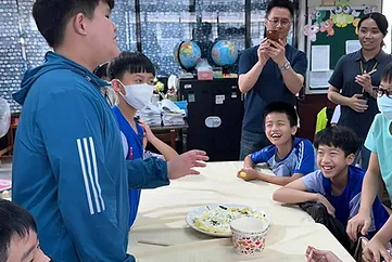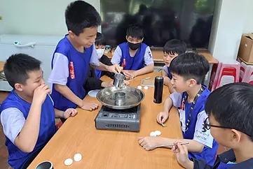 我們在合作了各組各自的料理後,開始接受訪問,把我們創作料理的過程說出來,也把我們的料理名稱說出,真是開心的一節課。