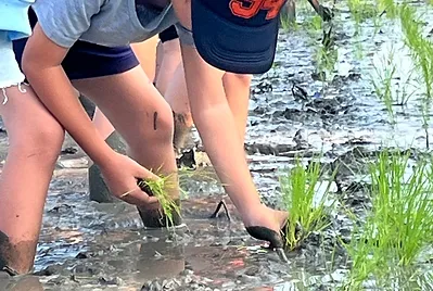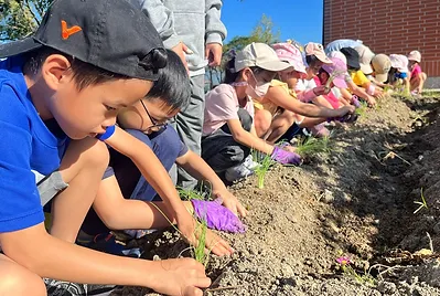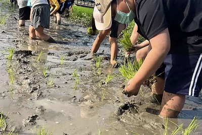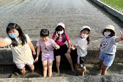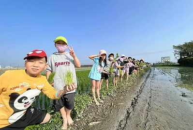 實踐客家人的勤耕雨讀,今天一起種下學校食農教的稻田,未來的一百多天,這個大田的稻米會陪伴我們的課程長大成熟,而它們也會是我們的自然科教材。