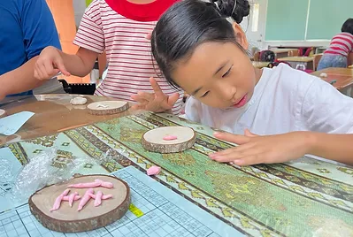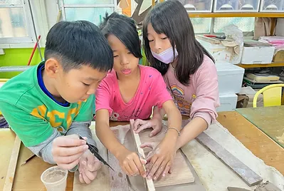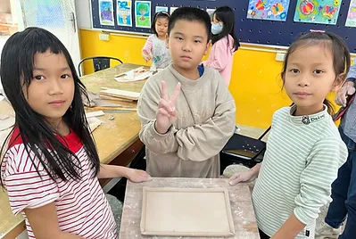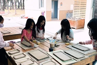 在美術老師的指導下,一系列用在地土燒製的盤子。絕對獨一無二~