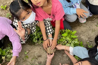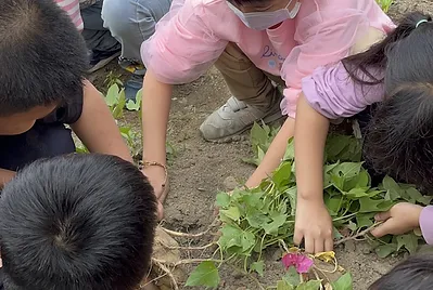 我們的小田,在寒假波菊盛開後也要整理預備種下這學期食農教育的農作物,拔除波斯菊和雜草,此時才能知道植物的根是軸根還是鬚根?同時,孩子回家的任務就是要回到家裡和家人請益或討論,這個時節的美濃最適合種什麼農作物?