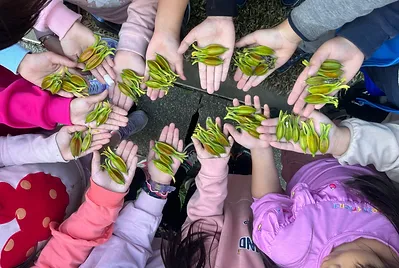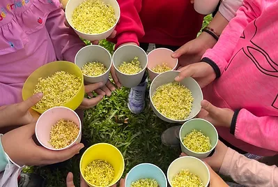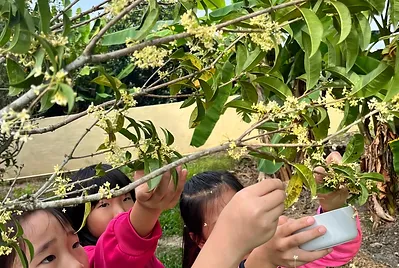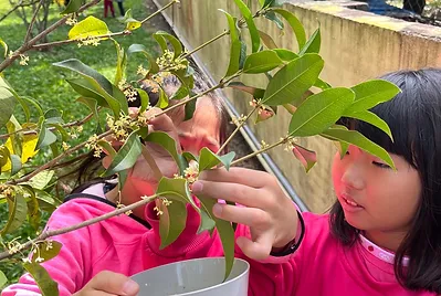 校園桂花香陣陣,一年一度做桂花蜜的季節又到了。小手採桂花、口裡哼兒歌、腳尖踮高高,採集桂花香~