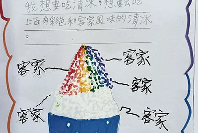 每個人都有夢想,小孩對於飲食的夢想是什麼?這個答案只有他們自己知道。小霖說:「我爸爸做的咖哩飯很好吃,但是我有一個夢想,想做一個自己的好吃咖哩飯給爸爸吃看看。」小亘脫口而出的夢想是:「很想要去吃美濃的清冰,想和全班一起去吃」小榛很想介紹美濃在地的一間炒粄條給同學試吃。而家裡開粄條店的小娜娜想要自己能夠做出有顏色的彩色粄條……