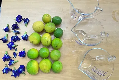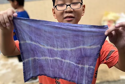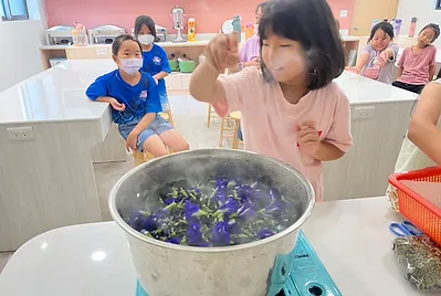 大自然的天然色素不僅可以將食物染色,還可以渲染生活中的在。國語課本「三峽老街樂藍染」裡,將藍染製做過程與美麗形容的細膩完整。持續收集了二個月累積足夠的量,今天用自己種的蝶豆花