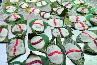 客家粄食的美味除了內餡與粄皮的美味之外,墊底在粄食下的天然植物葉子,是隔離蒸籠、也是增添天然香氣的好食材。