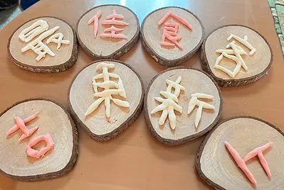 用麵粉加水,在木片上搓出想要的字,真的是健康又名副其實的捏麵「字」,別有一番風趣呢~
