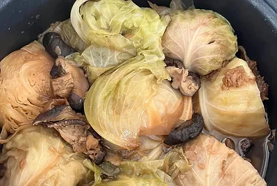 小田高麗菜收成,來個美濃道地客家菜~封高麗菜。利用20分鐘下課,食材丟丟丟,調味料倒倒倒,電子鍋按下去~