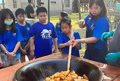 以客家飲食為媒介,擴展客家文化的交流。今天,高雄市新上國小三年級和吉東國小三年忠班的小朋友共下做出自己的午餐,共下交朋友。