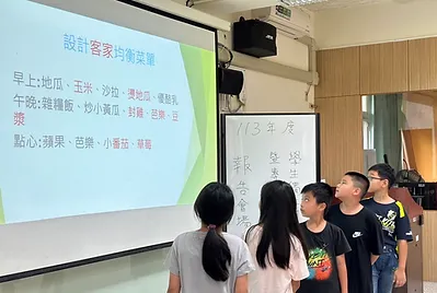 從吃食物六大營養素出發,孩子認識食物的均衡飲食,但是客家飲食中,哪裡可以看見這六大營養素呢?共同討論,共同發想,歸納整理,設計在地客家均衡飲食菜單