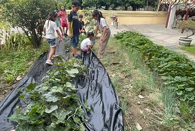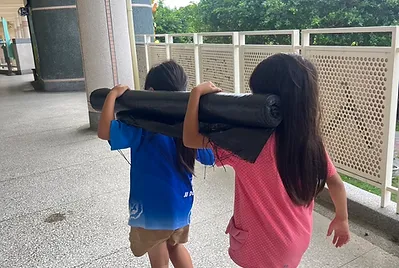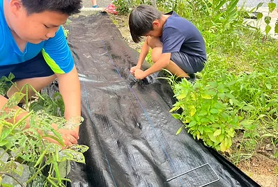 小田雜草不斷的生長,有沒有一種方式可以讓雜草長的慢一點。自然課裡學到了,植物的生長需要陽光、空氣、水和土壤,缺一不可。於是,我們想到了抑草案,利用黑色的塑膠布阻隔陽光,但是編織的布料可以讓植物擁有足夠的空氣和水。