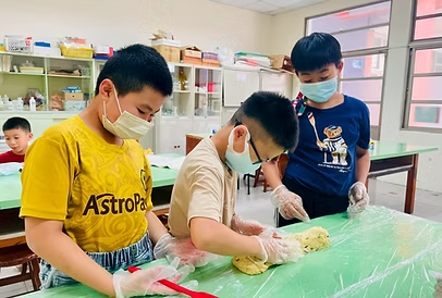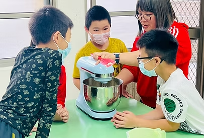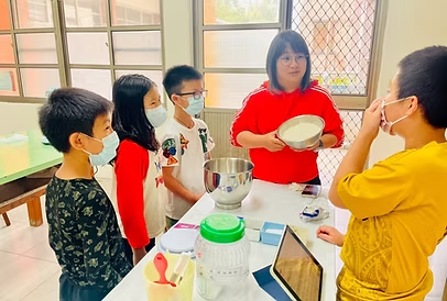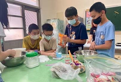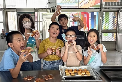 這天換我們當老師,帶著高年級的哥哥姊姊一起製作紅茶司康。原本以為會緊張,沒想到大家早已把每個步驟記得清清楚楚。從親手操作變成口頭引導,這樣的教學經驗讓我們感到既新鮮又有成就感。
