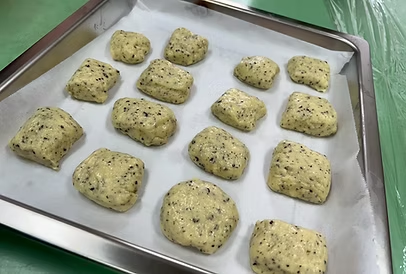完成麵團的製作後,我們開始將麵團塑形成適當的大小,並將麵團放到烤盤上,進入烤箱。