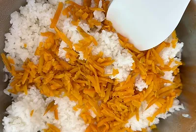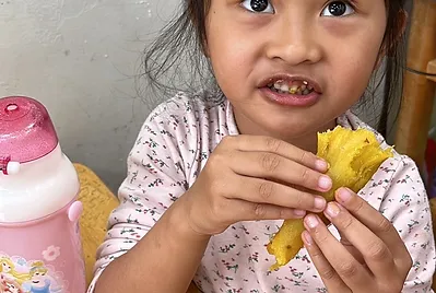 當廚房阿姨端營養午餐進教室時,幼生看到米飯,大聲告訴老師,老師妳看是地瓜飯耶!是我們早上認識的地瓜耶!老師請幼生好好品嘗地瓜老師試問幼生,吃地瓜飯的感想,幼生說甜甜蜜蜜的 ,很好吃!