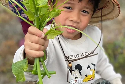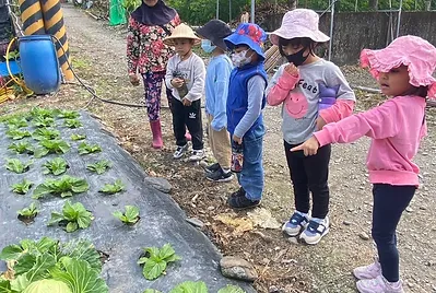 彩虹班初次踏入田園,謝謝vuvu為我們介紹田園裡的農作物,孩子們也期待下次的體驗喲!