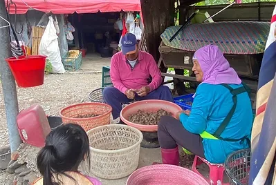 孩子們看到vuvu在用芋頭,好奇前往詢問!
