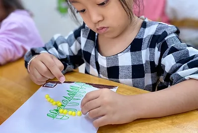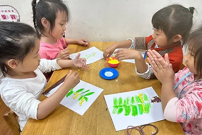 透過小勇的生活繪本,請幼生觀察小米的生長,幼生運用素材彩色筆及黃色保麗龍球,完成小米勞作。過程中能專注、分享、能互相協助給予意見,每個幼生小米都不一樣呢! 勞作的分享中,老師給予鼓勵與讚美 !