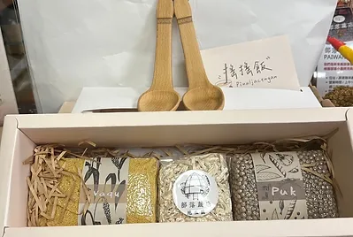 裡面販售著許多在地小農種植的根莖類蔬菜,還有部落有的紅黑藜、樹豆、米、芋頭、地瓜等乾糧