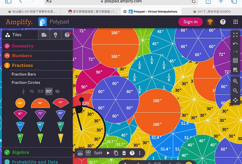 最近數學課正好上到「等分」與「分數」的單元,課本常以「披薩」作為教學例子,我也在思索如何將數學與早餐主題結合。我讓學生使用國外互動網站 Polypad.Amplify 練習畫圓餅圖,從二分之一到十二分之一應有盡有,還觀賞了國外老師將分數與音樂節拍結合的影片。這些活動不只增加孩子對分數的理解,更讓他們驚呼:「數學也可以這麼好玩!」