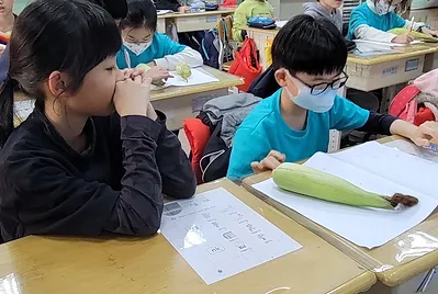 1.請小孩先觀察烹調過後玉米的外觀與氣味