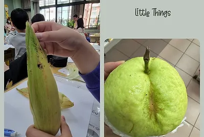 2.描述自己所看見的醜蔬果,並猜測它們他生了甚麼事