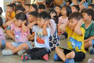 於是孩子利用拍手的聲響趕走麻雀,大喊著:不要吃我們的稻米~~~
