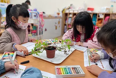 感受到生活中的樹木與植物的不同樣貌,孩子來感受天氣的變化、四季的更迭。不知不覺我們又長大。在這溫馨的氛圍下,有孩子感嘆的詢問老師,自己是否還可以再看到這些植物開花。老師有些難過的想,等到這些花再開,你們就畢業啦!也許是因為老師遲疑的回答,有孩子默默的說出老師心中的話:「等他下次開花,我們都上小學了!我們看不到。」另一個孩子毫不遲疑的說:「那到時候我們可以在回來看他呀!」大家開心的約定若畢業後一定要再一起回來看看校園。