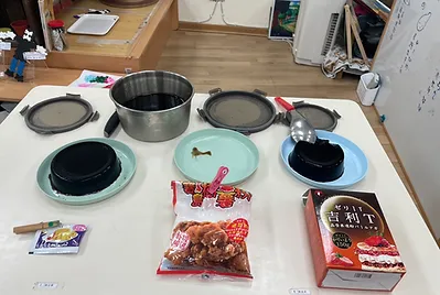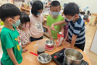 第二個口味是微糖仙草茶,孩子們說喝起來像糖果味,很喜歡。最後在品嘗仙草奶凍後有孩子發現:仙草要怎麼變成仙草凍?有人說煮完後冰冰箱5分鐘就可以了。本著實驗精神,藍天班孩子約定好要來實驗看看,未來有更多的仙草料理等待孩子去品嘗及探究喔!