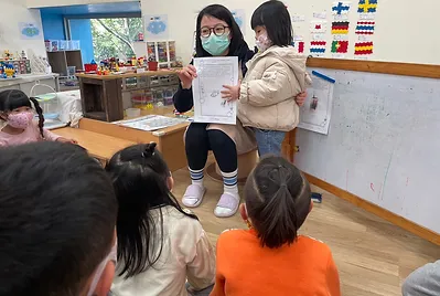 透過這次的校園探索,老師與孩子分享繪本「小樹的天氣日記」。繪本是以小樹的視角出發、大樹在一旁的溫暖陪伴,讓我們一起感受晴、陰、雨天的天氣,以及颱風天的強風暴雨、起霧時的灰濛濛感。是大樹和小樹共同記錄下每一則的天氣日記。同時孩子從中也發現小樹的成長與經歷。