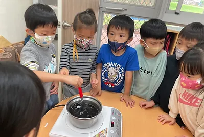 藍天班聽完奉茶故事,自發化身好心人,將仙草的好推廣出去,為了讓其他孩子感受仙草的味及色,安排了: