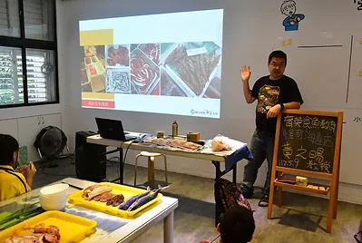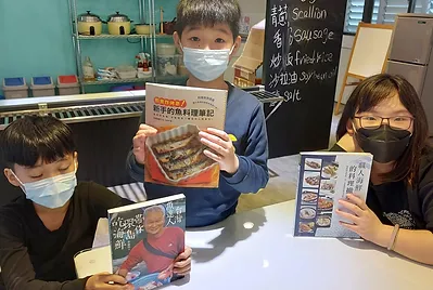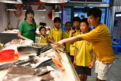 會如何挑選一條知道名字且又新鮮的魚之後,讓學生拿著《臺灣海鮮選擇指南》,學習如何買條健康又不會傷害環境的魚。