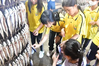 孩子們來粉鳥林漁港看到定置魚場起魚,可以看到搶魚實況與買魚流程,指導孩子一起看這滿載而歸的盛況,魚海裡辨識魚種是高難度的挑戰,除了每日搶魚時有較多買魚的人潮以外平時幾乎沒有人潮,讓孩子們看到最新鮮的魚長什麼樣子。