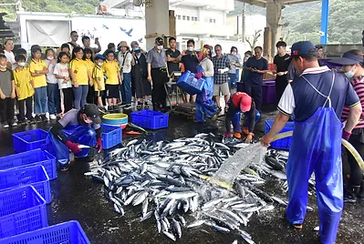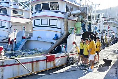 五年忠班猴猴孩子小小漁樂家參觀粉鳥林漁港定置魚場的現撈仔