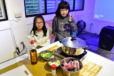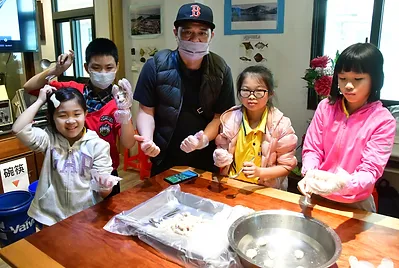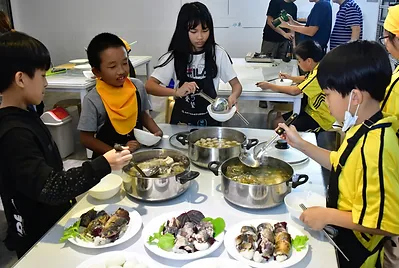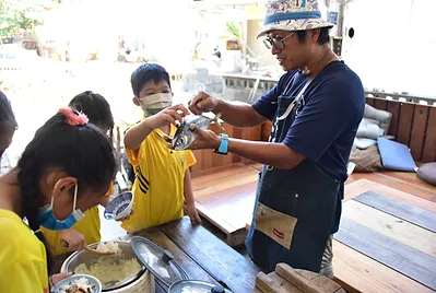 老師們指導孩子們自己手做魚丸,新鮮的飛虎魚肉做出來的魚漿用手擠一下,讓魚漿變成圓形就是魚丸,看似簡單其實是需要技巧的,放到水裡面就大功告成,準備烹煮享受美味的飛虎魚丸,現煮現吃真有趣!秀慈阿姨還會在課堂上細細解說飛烏虎(鬼頭刀)魚丸的由來,及其相關深海環境。讓大家可以吸收更多外面學不到的知識!