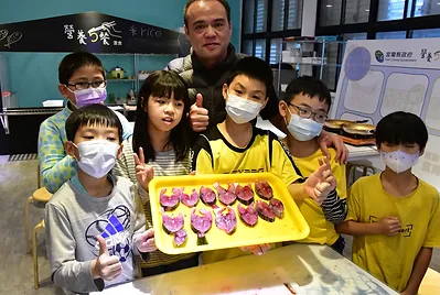 育英國小五年忠班猴猴孩子小小漁樂家的企畫主題「南方澳與餐桌上的魚故事」暨蘇澳地區農會四健會猴猴壽司食農食魚教育作業組第一堂課豆皮山藥魩仔魚壽司