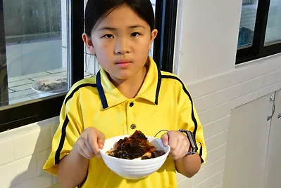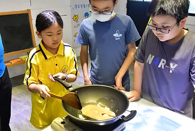 育英國小孩子們的小卷米粉製作
