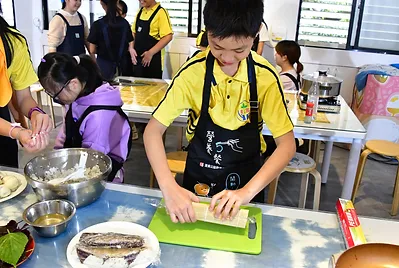 團隊力:學習打飯服務進而合作協力烹調魚料理,培養團隊合作的大格局。