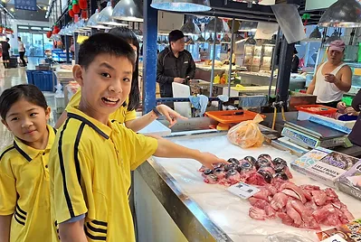 五忠孩子們到南方澳漁市場踏察,挑選食魚教育課程要用到的魚,有煙仔虎、鎖管、鯖魚。孩子們已經討論好要製作了鯖魚味增湯、煙仔虎鮮魚湯、乾煎煙仔虎、醬燒演仔虎、鎖管米粉、糖醋鯖魚、等好吃的料理,各式各樣的魚料理更是大滿足!