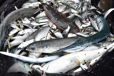 買到的煙仔虎(東方齒鰆、啪骨仔)和鮪魚同屬鯖科,煙仔虎背上的線條較細,而且只在背部,煙仔虎肉質鮮味濃郁,煙仔虎圓滾結實的身型累積著豐碩的脂肪。而長腰鮪俗稱黑鰭串仔,廣泛分布於印度-西太平洋的沿近海域,肉色有別於其他鮪魚常見的紅色系,而是呈現淡紅色,滋味口感不輸黑鮪,因此深受民眾喜愛,價格遠高於黃鰭鮪。