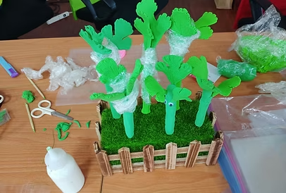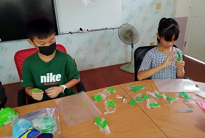 香菜的「媠」除了實際最新鮮的蔬菜模樣外,也能透過紙黏土手作的方式,展現香菜另外的風格、面貌。在藝文教師的指導下,學童開始手捏、切割、脈膜、塑形,最後包覆在原子筆桿上,一支支可愛的「香菜筆」就完成了。學童在手作過程中,不只是將香菜的意象透過五感呈現,也能夠將香菜的美用藝品的方式保存。