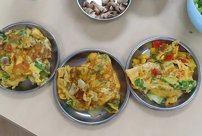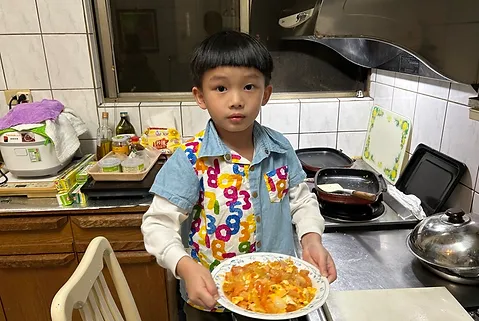 透過實作孩子們品嘗自己所料理的蔬菜煎蛋料理,孩子們發現有不同的配料味道上有變得更不同,青菜、蛋和洋蔥孩子們覺得吃起來有甜甜的味道、有汁很好吃,蘑菇有鹹鹹的味道、紅椒青椒咬起來脆脆的像餅乾。
