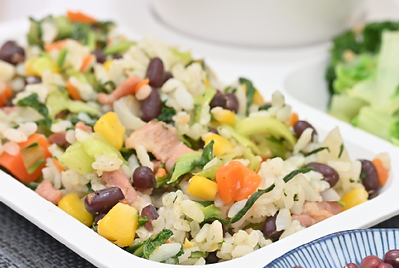 1、主食-艾草蔬菜炒飯/蝦仁萬壽菊青醬義大利麵