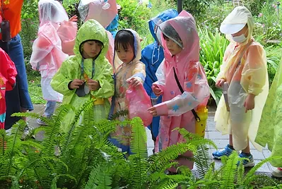 每週二是戶外踏遊的日子,在出發前與小朋友回顧,這學期我們去靜心湖認識那些可食的植物,在回顧討論的過程,小朋友講出大約快二十種可食植物,如福木、茄冬樹、腎蹶、山蘇、紫花酢漿草、薰衣草、香蜂草、艾草、薜荔、萬壽菊、鼠麴草、李子樹、蓮子、蓮藕、車前草、野薑花、月桂葉、昭和草、桂花、朱槿、向日葵等,要出發靜心湖時,老師請小朋友一起尋找我們之前認識過未標註的可食植物,結果小朋友眼睛都像雷達一樣,發現許多之前常走動未注意到的可食植物,像小花園就發現6~7株山蘇、廁所旁的涼亭發現7~8株桂花樹。