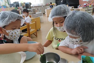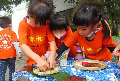 幼兒園日常餐點中,大部分的蔬菜尤其是深綠色不太受歡迎,只願意拿取少量,因為吃起來「苦苦的」、「硬硬的」、「有奇怪的味道」、「有時候會有渣渣」,這些深綠色蔬菜的味道和纖維,似乎劃下一道界線,讓孩子的胃口止步。我們進一步帶著孩子食驗用什麼樣的料理方式可以願意嘗試更多不同味道的蔬菜,探索過程中,孩子偶爾吃到是用深綠色植物做成的艾粄,被艾粄獨特的香味給吸引,決定要自己動手製作看看,在這科技冷漠的新竹園區中,這群來自科技創新世代孩子們又將在探索傳統艾粄中,找尋一道道耐人尋味的實驗好滋味。
