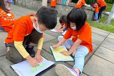 靜心湖還有哪些好吃的葉子?這次我們透過用拓印的方式認識不同形狀的葉子,把不同的葉子放在紙的背後再運用蠟筆把葉子的葉脈、葉緣、形狀、大小拓印出來在紙上記錄。