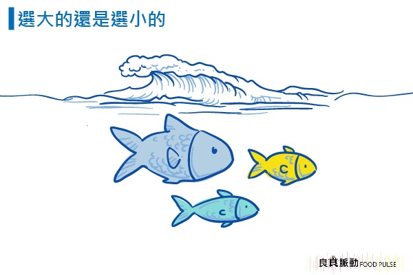 吃魚,應該選擇食物鏈底層的小型魚類如沙丁魚,還是頂層的大型魚類如鮪魚?建議消費者儘量選擇食物鏈最底層的魚類,如水母(海蜇皮)、魷魚、虱目魚、沙丁魚、鯷魚、鯡魚、鯖魚……,不吃多年生的大魚以及魚翅、珊瑚礁魚類。
