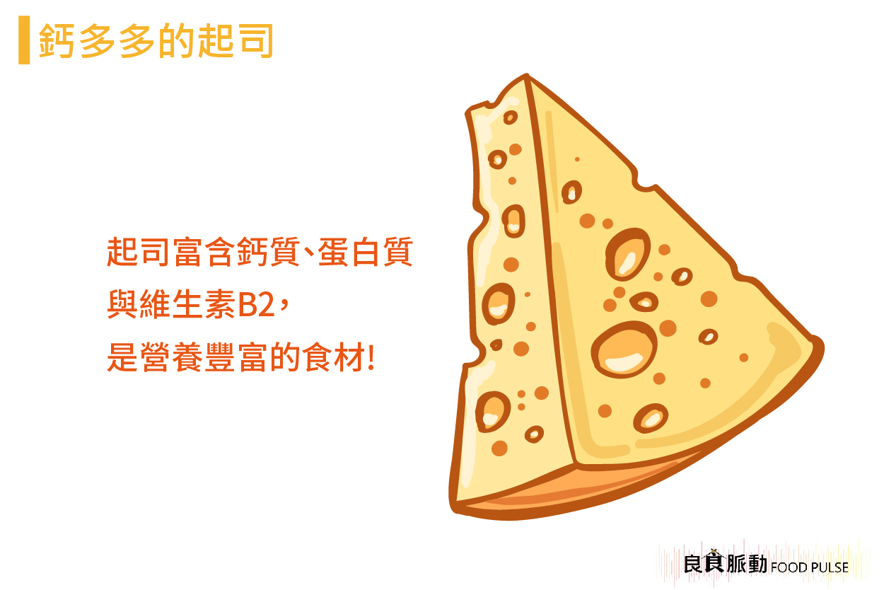 其中,牛乳是最常被推薦用於補鈣的食物之一,那麼以牛乳為原料製作的天然起司與再製起司,是否也能作為補充鈣質的食物?一杯牛乳(約250毫升)可以獲得約250毫克鈣質,而一片市售再製起司片則含有約133毫克鈣質,每天吃兩片約莫等於一杯牛乳的鈣含量。由於起司不只能夠單吃,還能廣泛應用於各種料理中,因此相當適合作為鈣質攝取來源,讓鈣的攝取充滿更多變化與巧思。