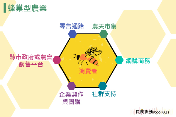 蔬果保鮮期短,如果能趁著鮮美的時候,運銷蔬果到消費者手中,就不致潰爛,農夫也不會因為出不了貨而慘賠。所以,多元化的蜂巢農業型態對於農夫和消費者都能幫助從產地到餐桌的管道暢通、農業永續。