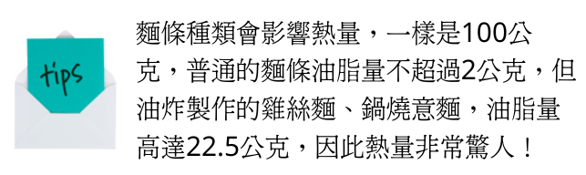 麵條種類多元,因此在選擇時,有幾個訣竅可以做為參考,來減少油脂與熱量的攝取。