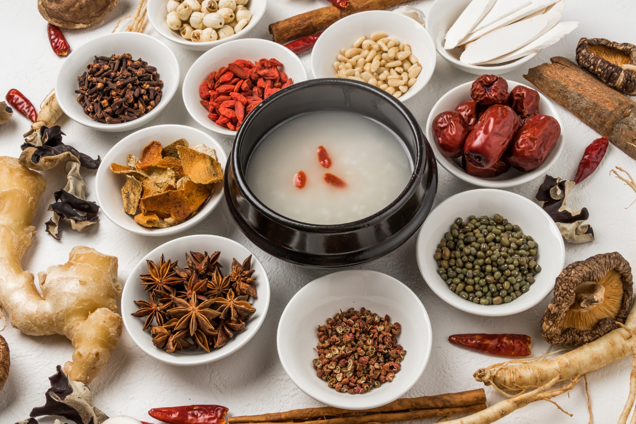 冬令進補可使用四君子湯補氣、四物湯補血,或二者相加為八珍湯,又或再加黃耆、肉桂成為十全大補湯,用來燉雞肉或排骨,滋養的紅棗、紅豆、紫白山藥點綴品相,容易用做冬令進補食材,小朋友也喜歡吃,成為補膳上的最佳配角。